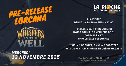 Détails des évènements = https://boutiquelapioche.com/pages/reglements-ligue-lorcana-saison-whispers-in-the-well