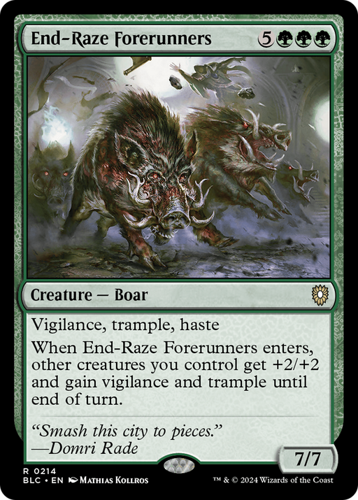 Bloomburrow CommanderRupture de stockCasting Cost Card TypeCreature — Boar RarityRare ArtistMathias Kollros Power/Toughness7/7 ...