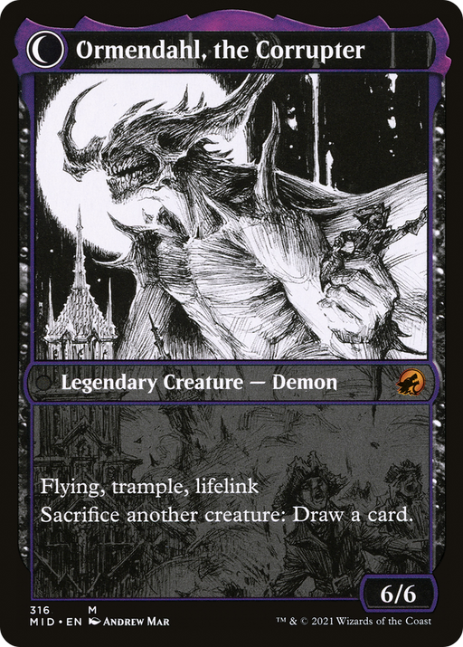Innistrad: Midnight HuntOut of stockCard TypeLegendary Creature — Human Cleric // Legendary Creature — Demon RarityMythic ArtistAndrew Mar ...