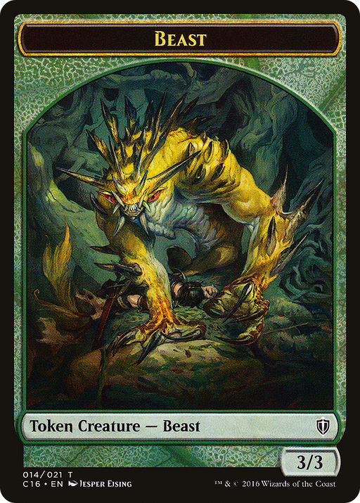 Commander 2016 TokensOut of stockCard TypeToken Creature — Beast RarityCommon ArtistJesper Ejsing Power/Toughness3/3 Lega...