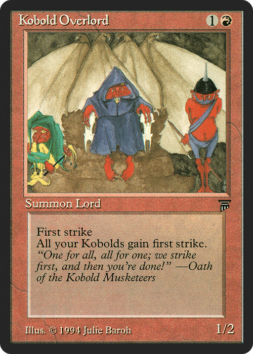 LegendsOut of stockCasting Cost Card TypeCreature — Kobold Soldier RarityUncommon ArtistJulie Baroh Power/Toughne...